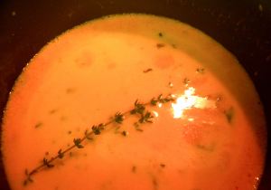 French sorrel is an herb that few people in the U.S. seem to grow. That’s a shame, because sorrel is great in soups and bisques, adding a nice lemony flavor. That lemony tang comes from oxalic acid, so I never put too much of it in soups. I’m also careful to use non-reactive cookware (non-stick pots and wooden spoons, no aluminum or iron cookware) when cooking with it.