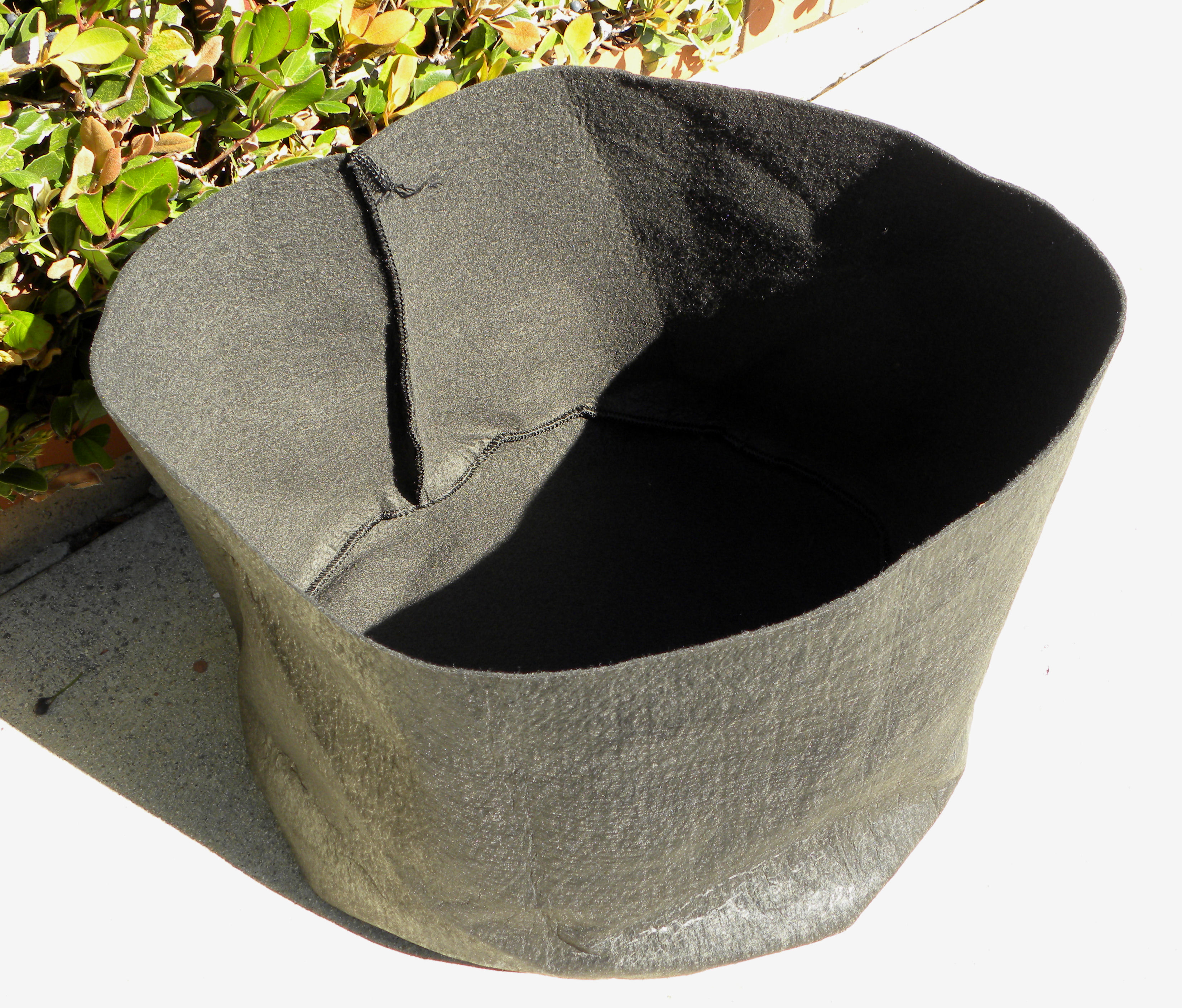 This 15-gallon Smart Pot container is made of a porous felt-like material. I got them from Garderner's Supply Company.