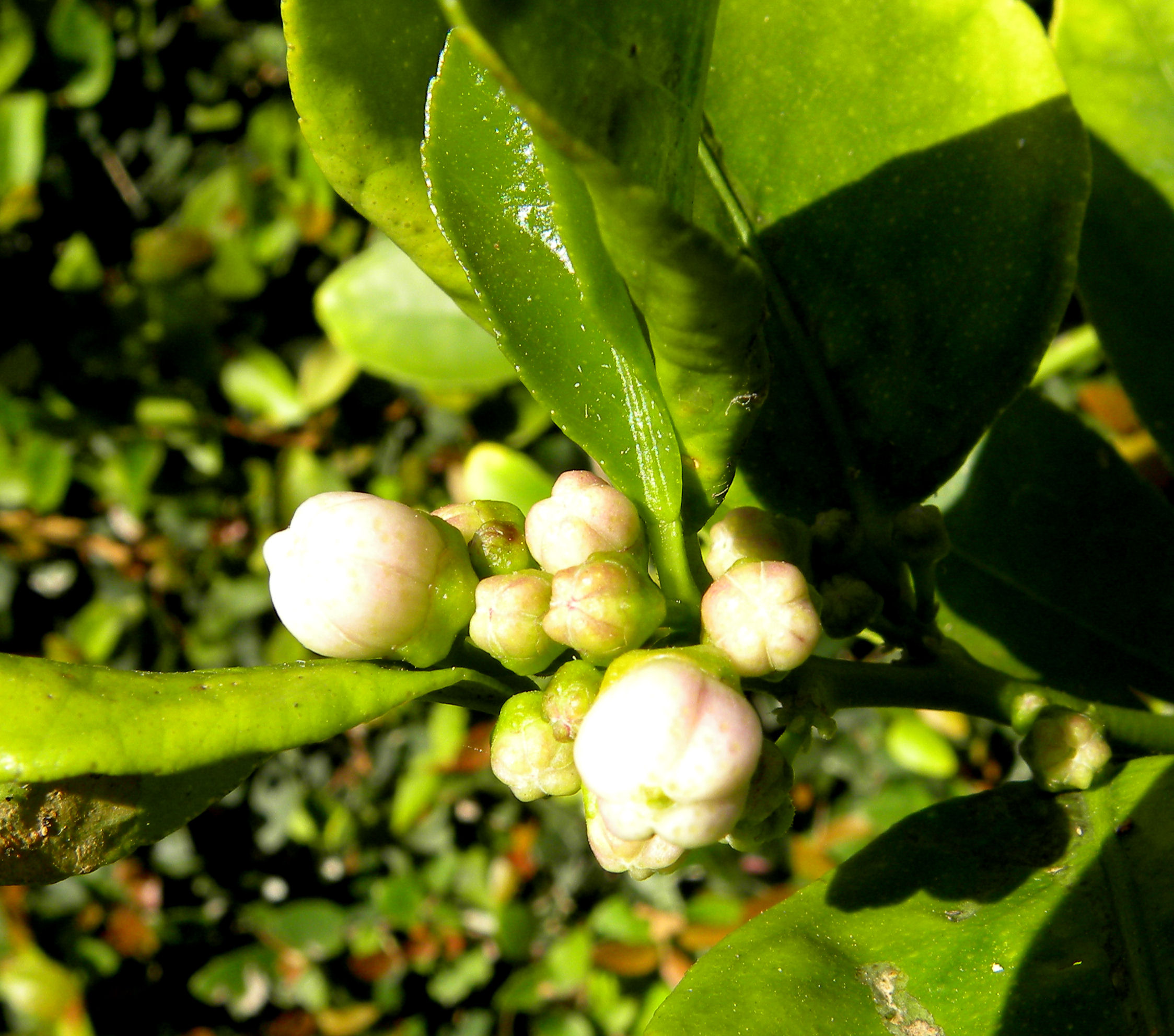 The two lime trees are beginning to bloom, a bit after the Eureka lemon trees. The Meyer lemon and orange trees have no flower buds on them yet, but it’s still early for them.