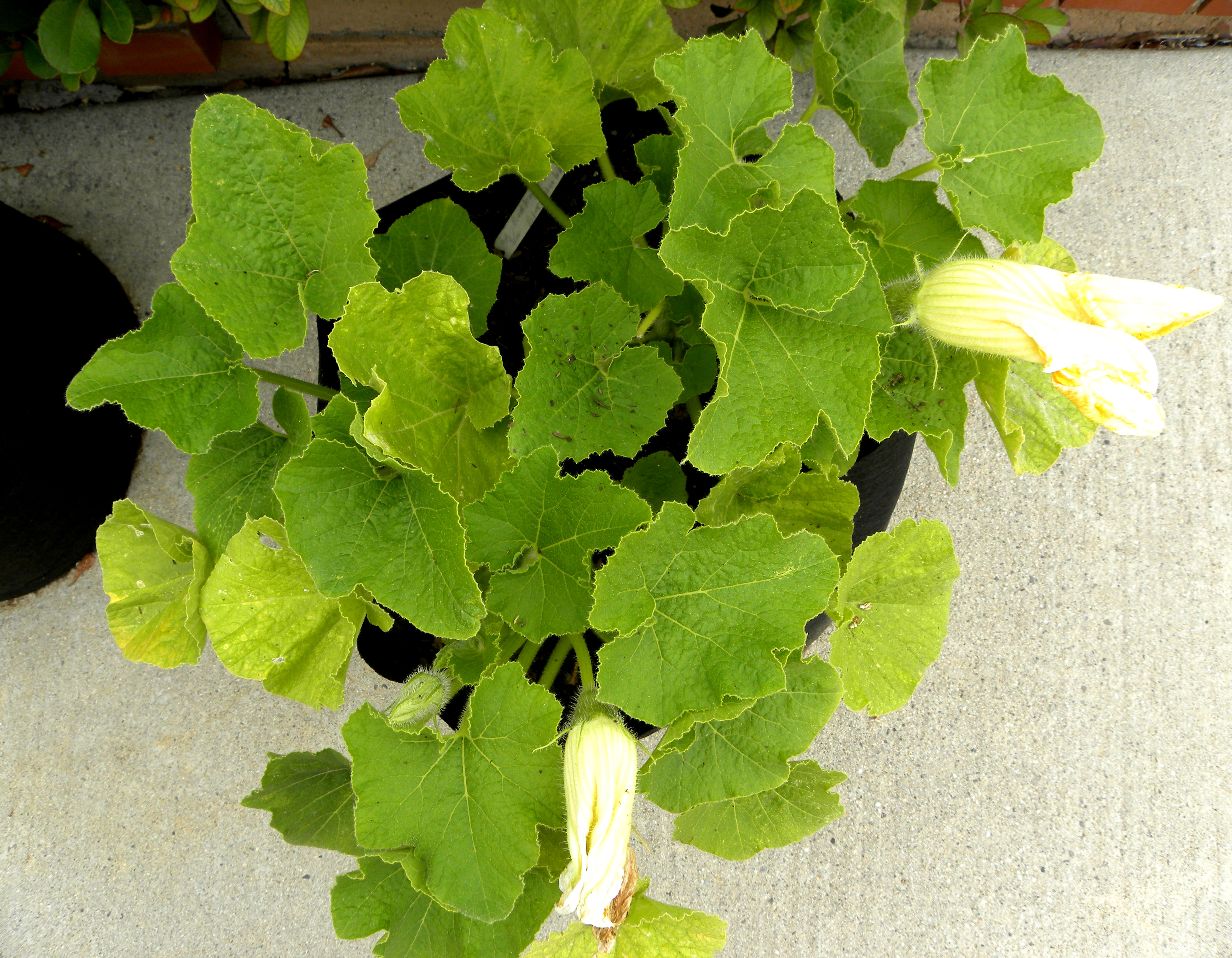 With the first female flower now getting ready to open, there is hope of getting at least one winter Kuri or mini-Hubbard. But I didn’t plant any pumpkins when I should have. I kept hoping that the Huntington Beach community garden would be up and running sometime this summer. Ha! We don’t have a lease yet from Southern California Edison, and can’t set foot on the property yet. And we still need to raise the money to pay for installation of irrigation, etc.
