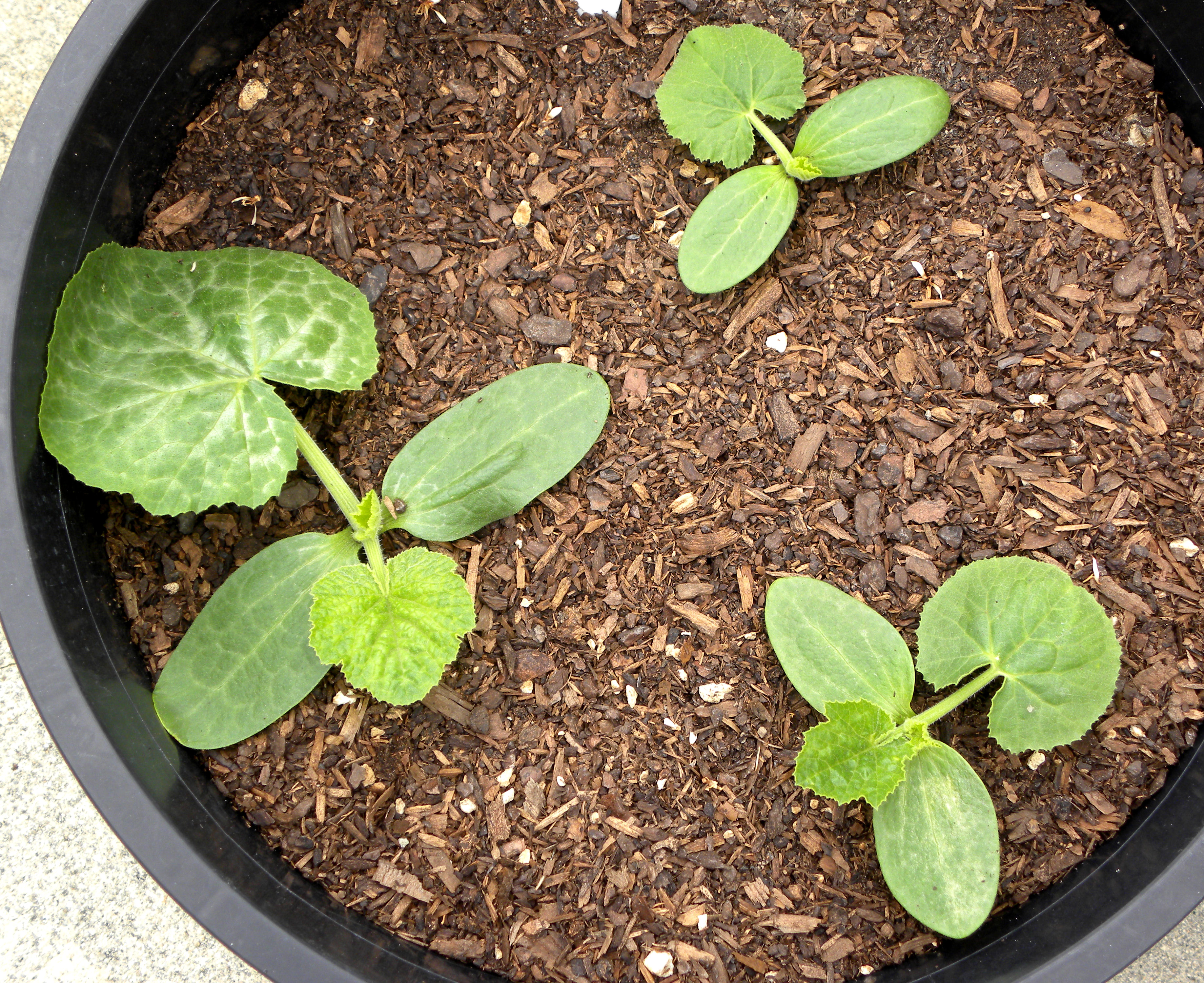 Not having any summer squash to speak of, I’m trying once more to grow some this season. I planted seeds for Clarinette Lebanese and Gold Rush zucchini in plastic nursery pots in the driveway. Our driveway gets more sun than any other part of our yard, so I have hope of possibly getting some summer squash yet this year.