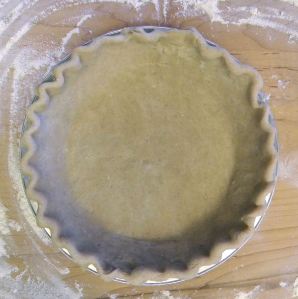 Make enough dough for two pie crusts. Drape crust to fit the pan and trim if necessary.