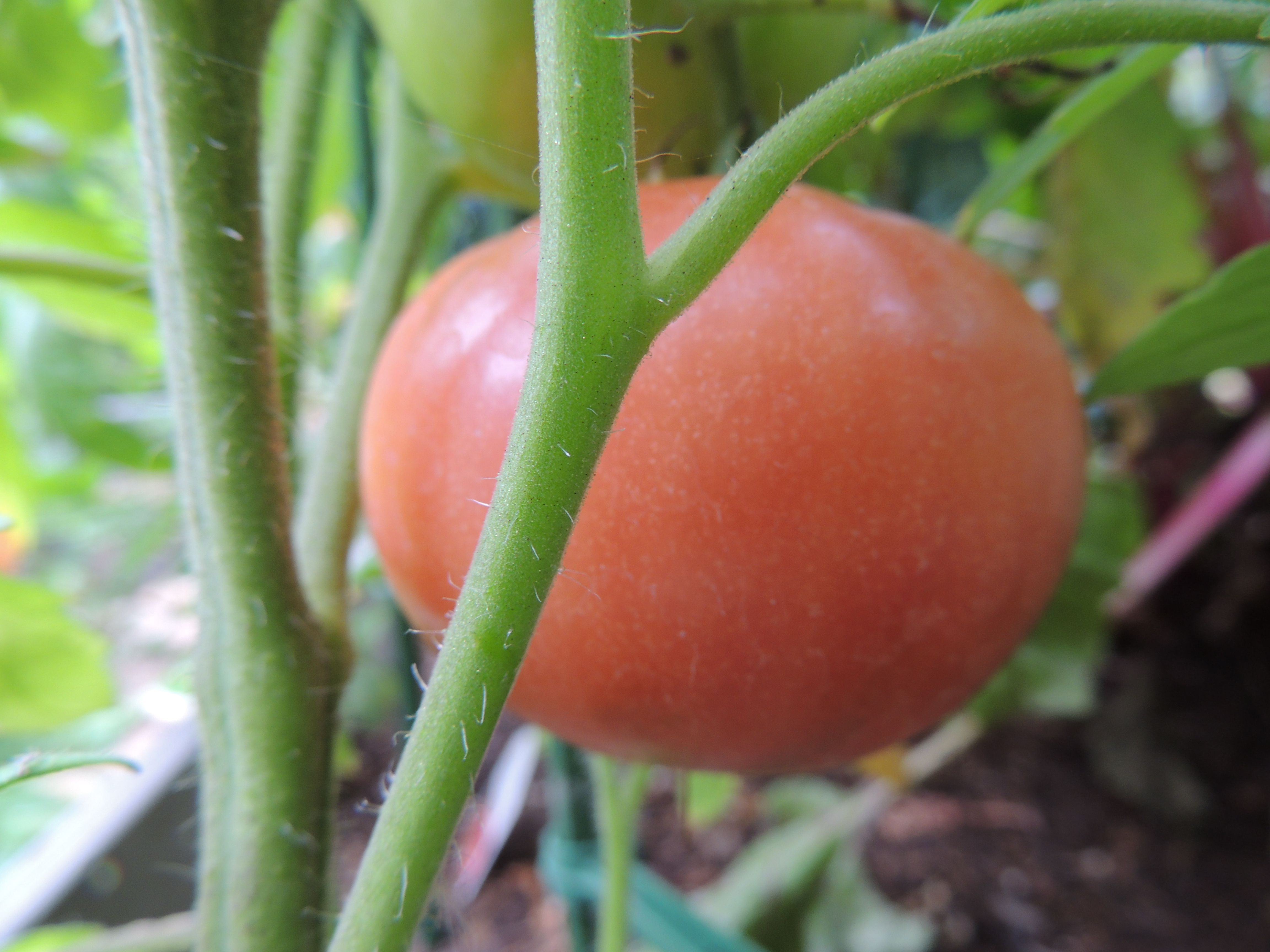 Mortgage Lifter has won the race for which tomato is going to ripen first. It beat out Early Girl. Others that are full sized but still green are early Girl, Box Car Willie, Amish Paste, Big Russian Paste, and Black Plum. The others are straggling and struggling.