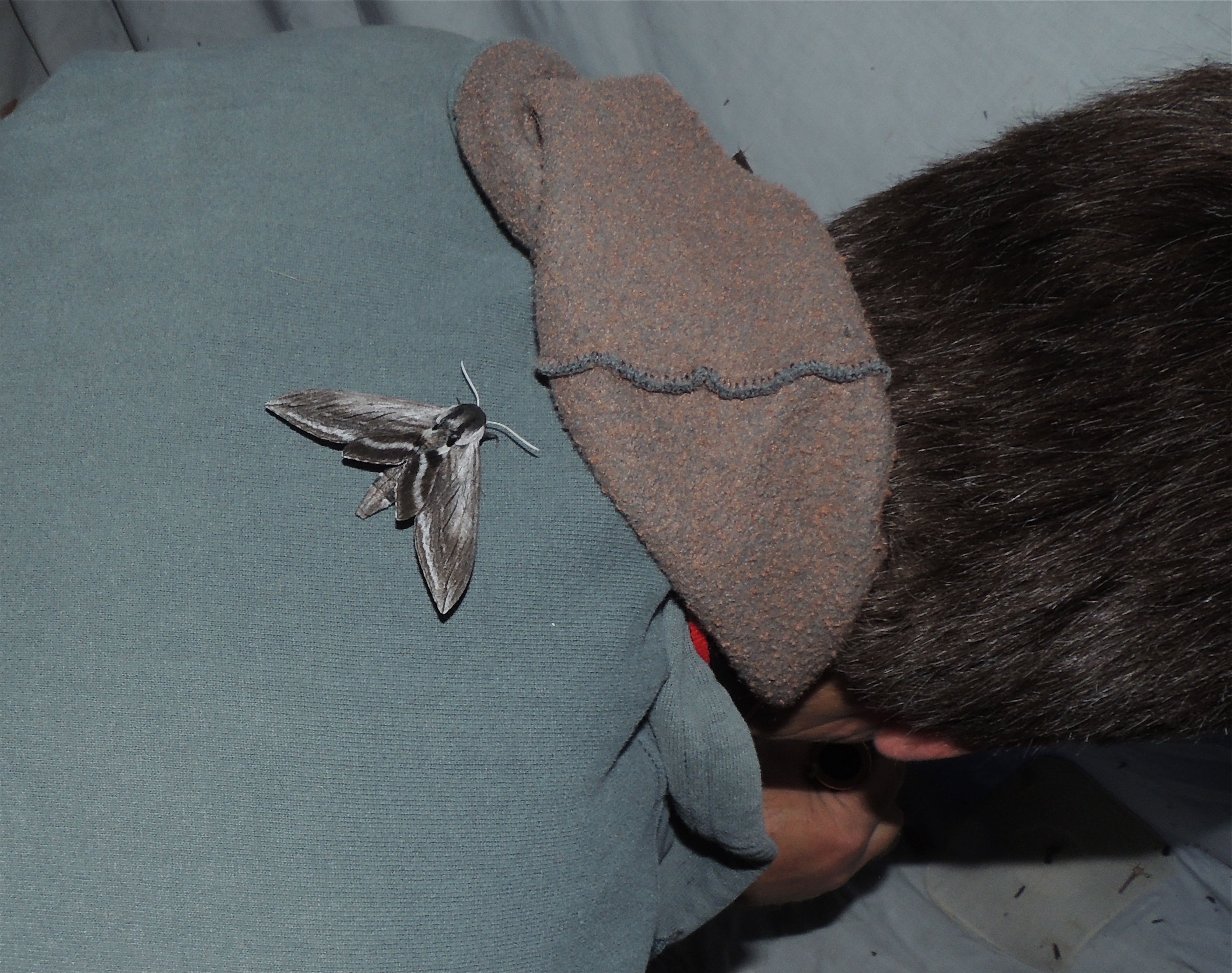 1. Oh! That seems like a much more sensible approach. Entice the creatures to come to you in the dark, rather than running around the woods looking for them 😉 I’m quite envious of the Elegant Sphinx Moth you found. I’d love to find Sphinx Moths here. I know we have a number of species of Tiger Moth, as they tend to cluster under our porch light at certain times of year. I may have to try this trick though, and see who flutters toward the light!