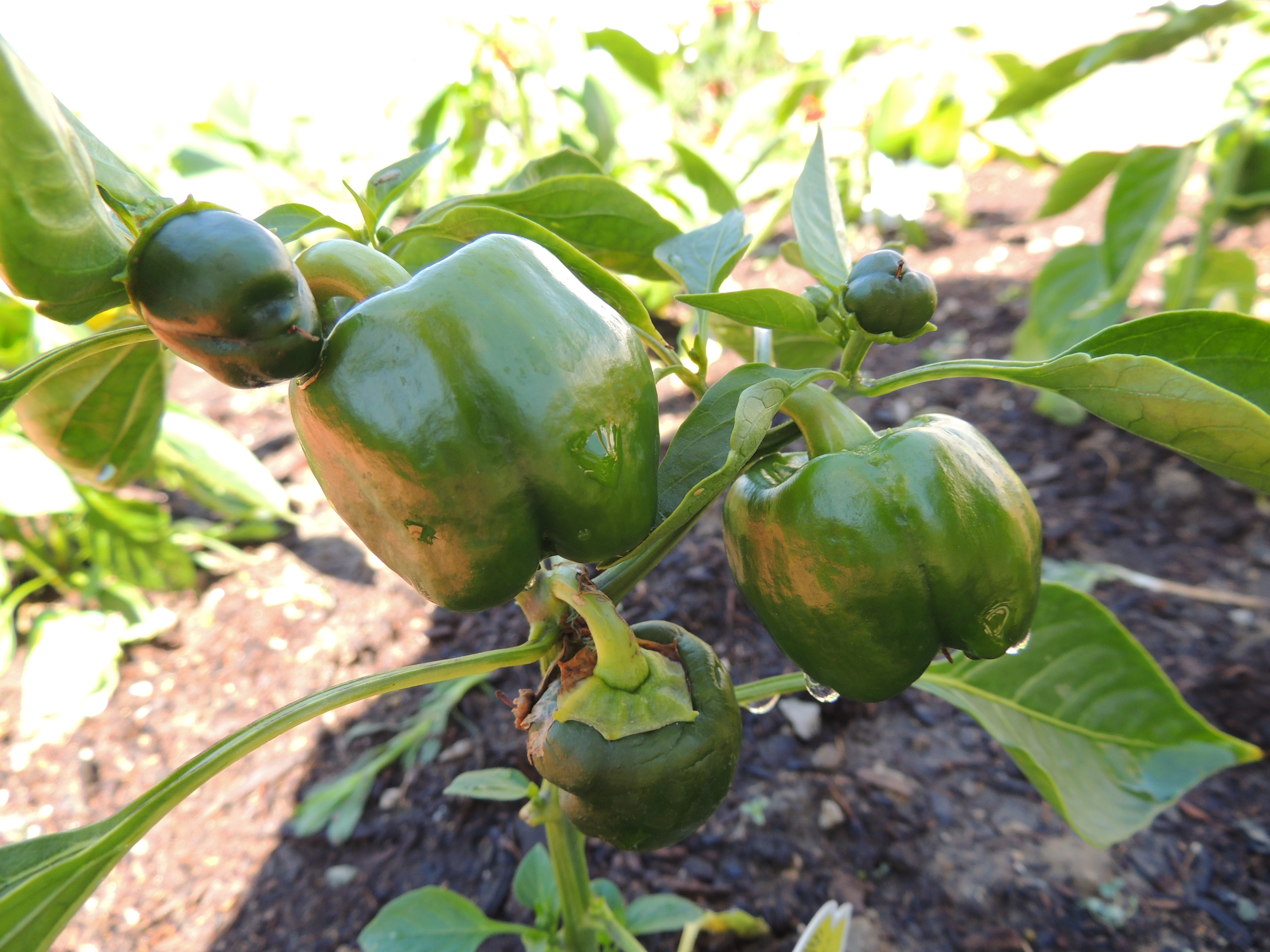 It is looking like bell peppers will be the first crop to be harvested from the community garden.