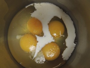 Beat the eggs with a bit of half and half and some salt. I used Himalayan Pink salt.