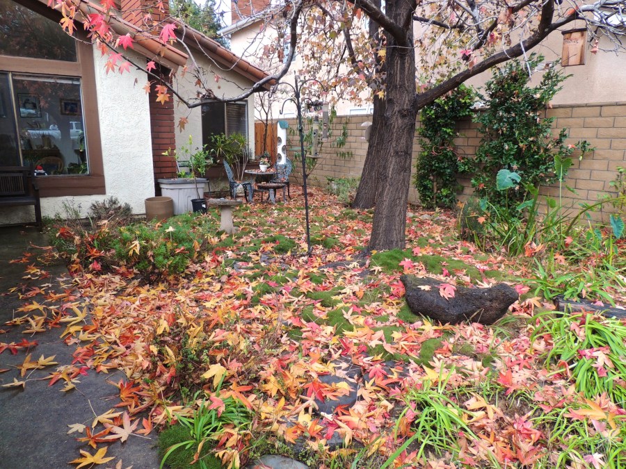 Our front yard with MORE fallen leaves. It seems like there is no end to the leaves. I bag them and compost them over the course of a year. Garden gold.