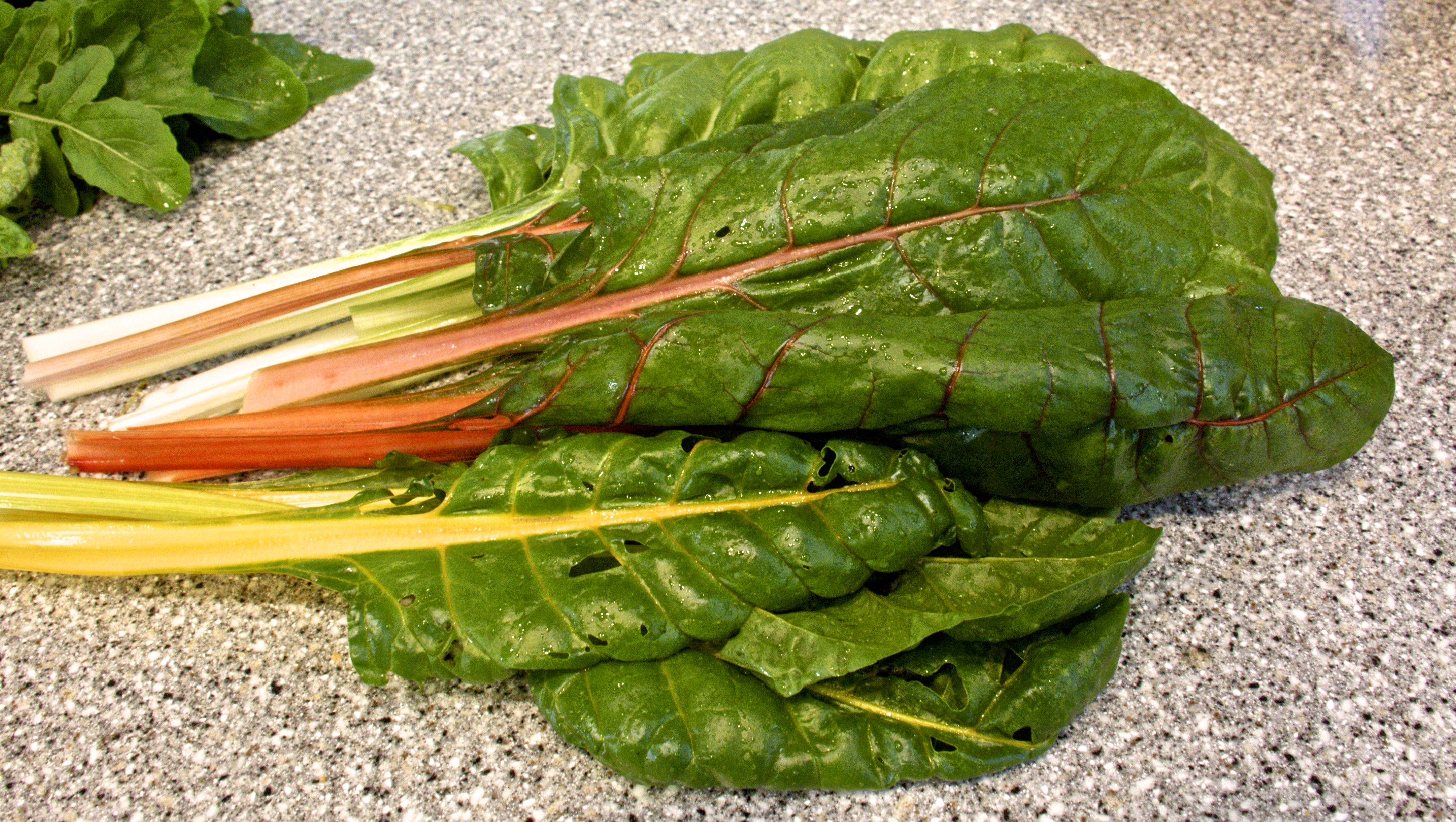 I sautéed the chard with garlic in olive oil, added a splash of basalmic vinegar and some Parmesan cheese, and topped each serving with a sliced boiled egg. Garlic toast and lasagna completed the lunch for company.