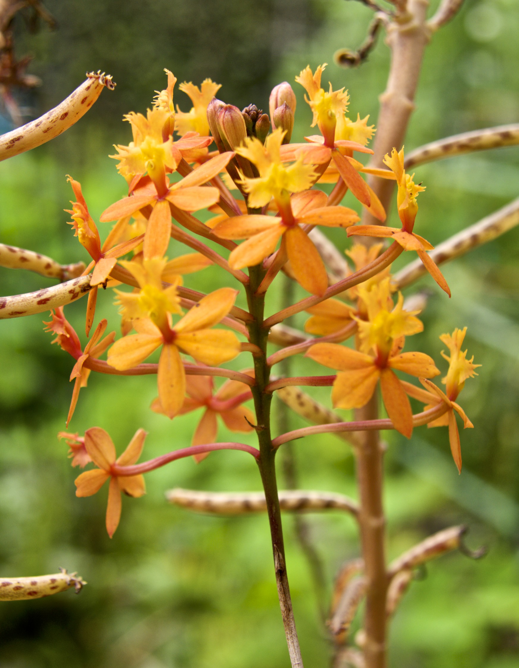 Pink cymbidium orchids bloom on the back deck. They have been blooming for weeks. The white ones aren’t open yet, so I get about 3-4 months of orchid bloom each spring.