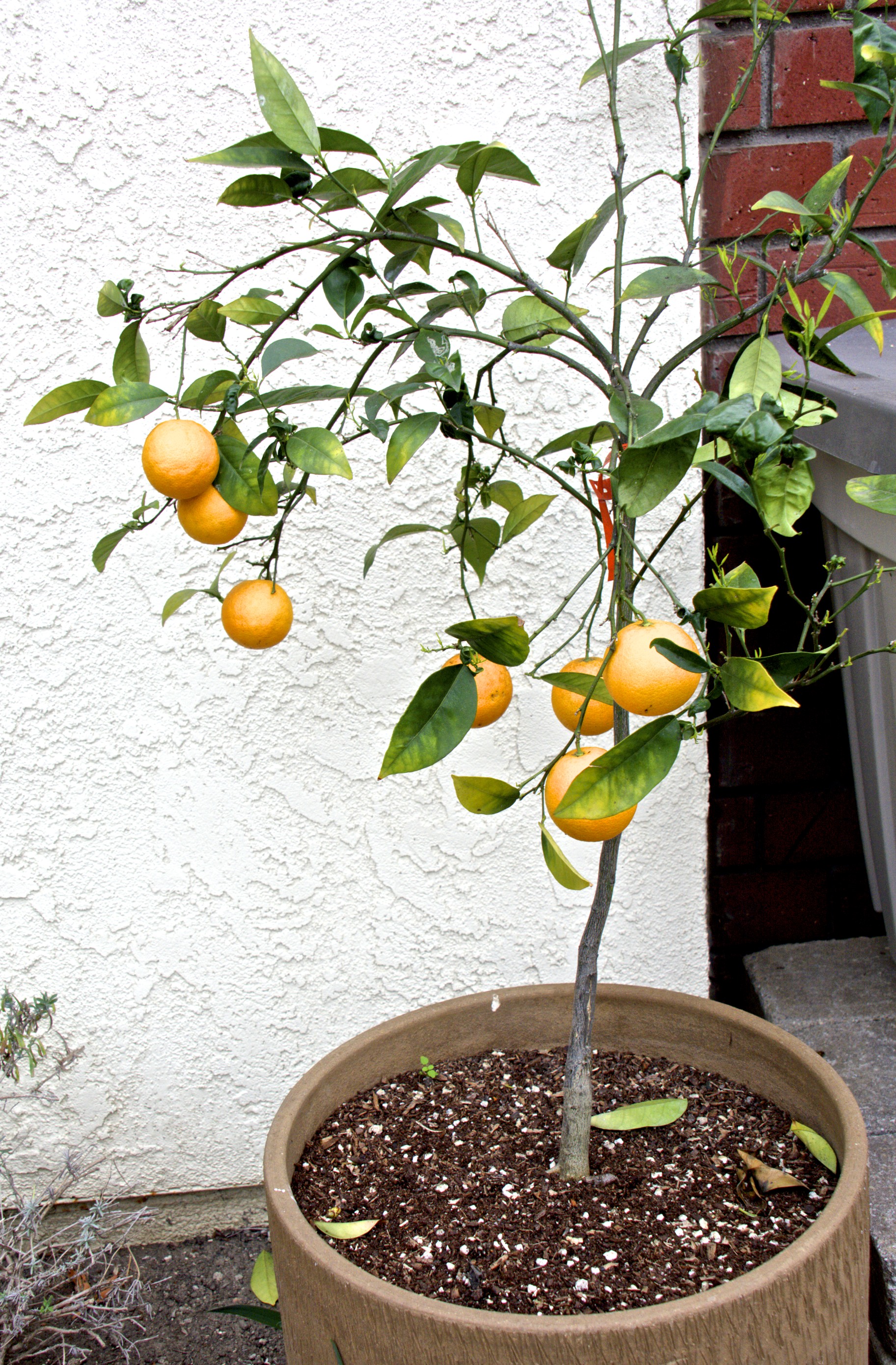 This little Valencia orange is doing fine in a pot in front. It looks like we will get some fruit from it this year. The navel orange, lime, Meyer lemon and Eureka lemon trees are doing fine with fruit ready to harvest.