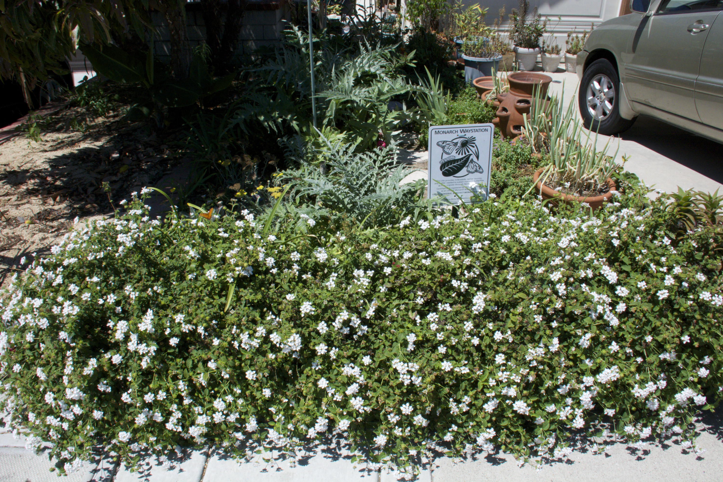 Butterfly garden with white lantana in front