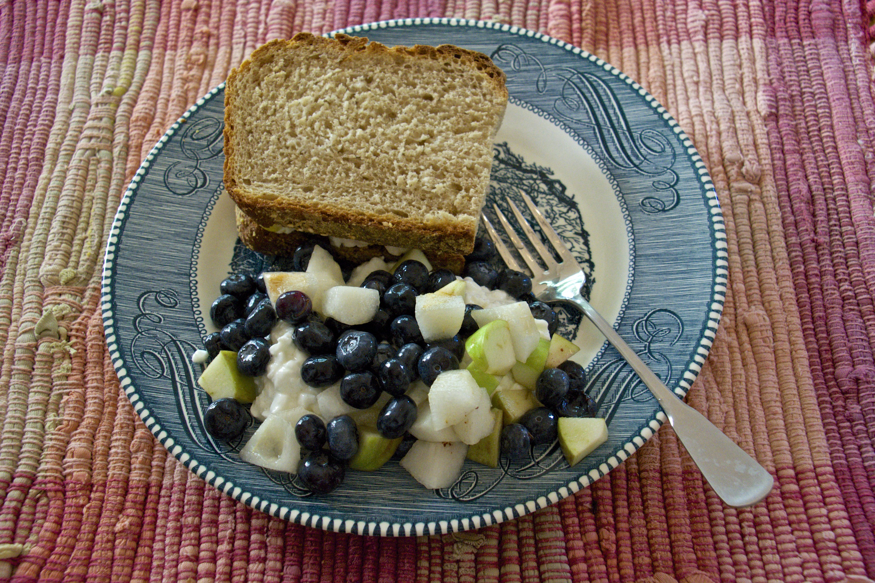 Some of those apples and pears mixed with blueberries go well on a pile of cottage cheese. Add a tuna sandwich on home baked sourdough bread and you have a Slow Food lunch.