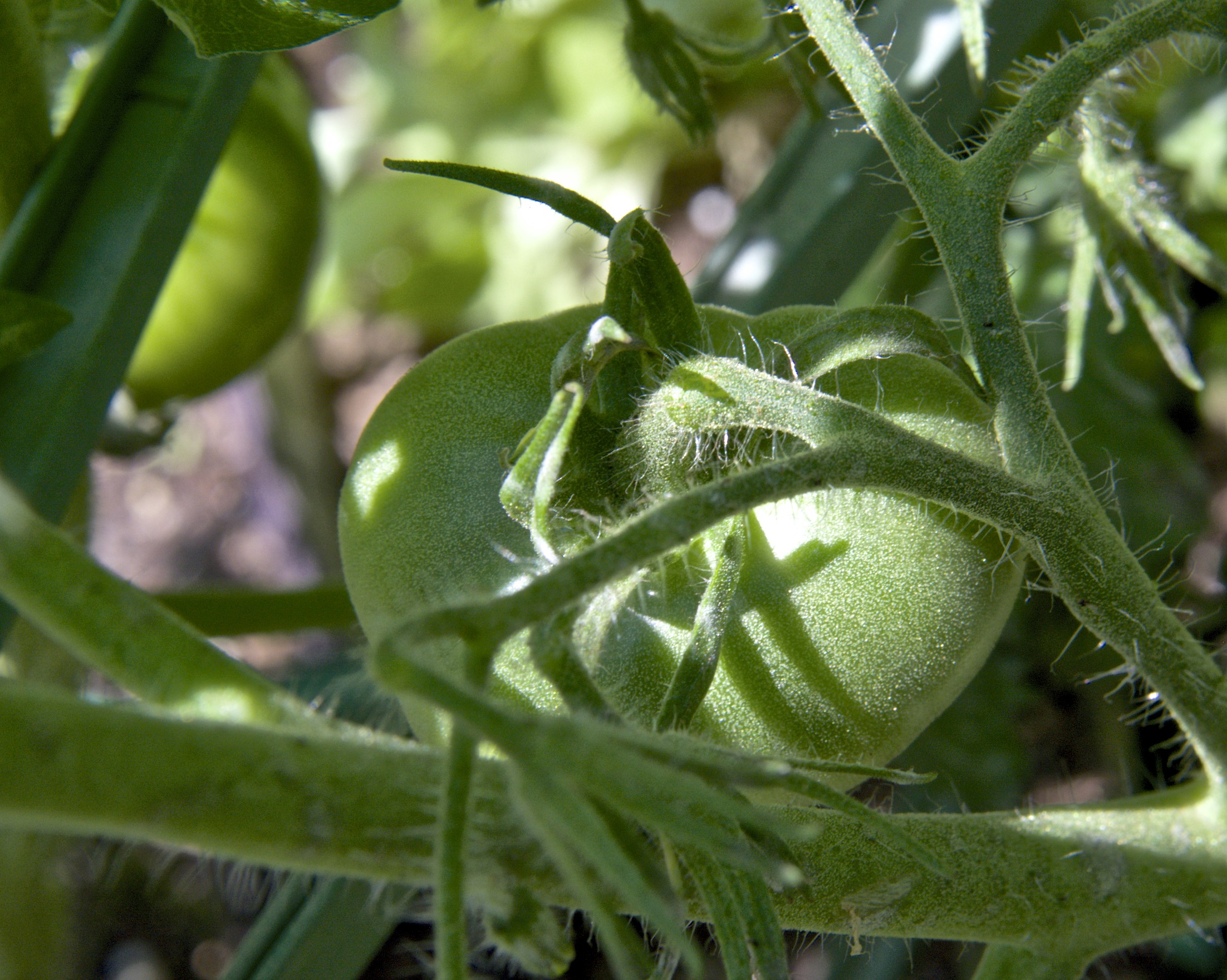 The tomatoes have a lot of blossoms on them. We haven’t had many honeybees this year, and no bumblebees, so I flick the flowers every morning to help them get pollinated.