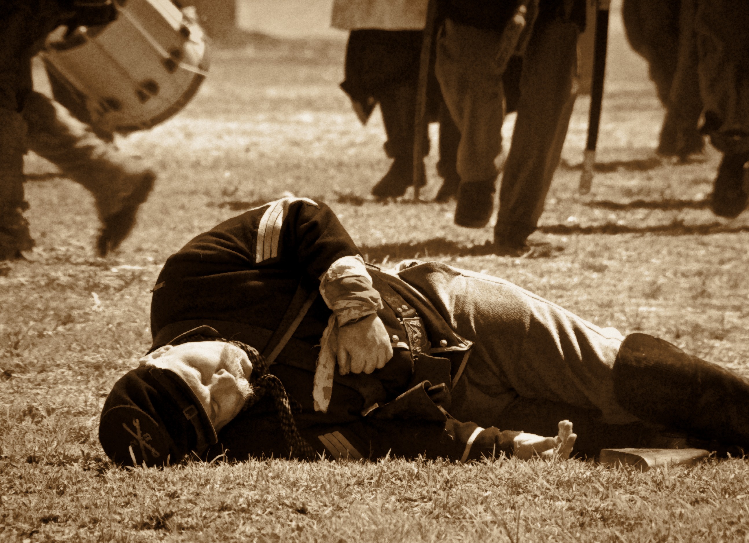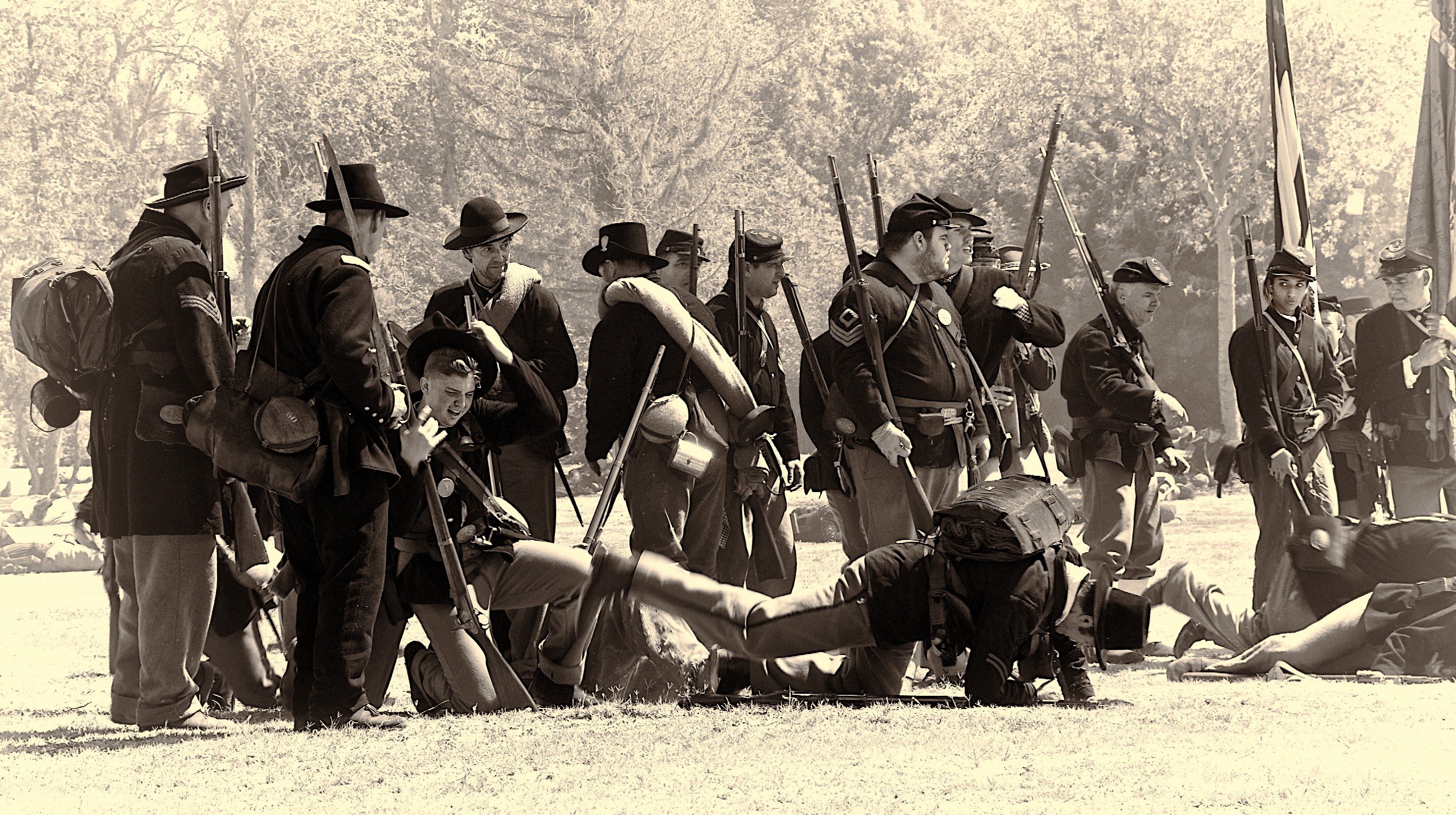 But it was no use. The Union lost this battle. The reporter (with white satchel over his shoulder) took notes for the Herald Dispatch.
