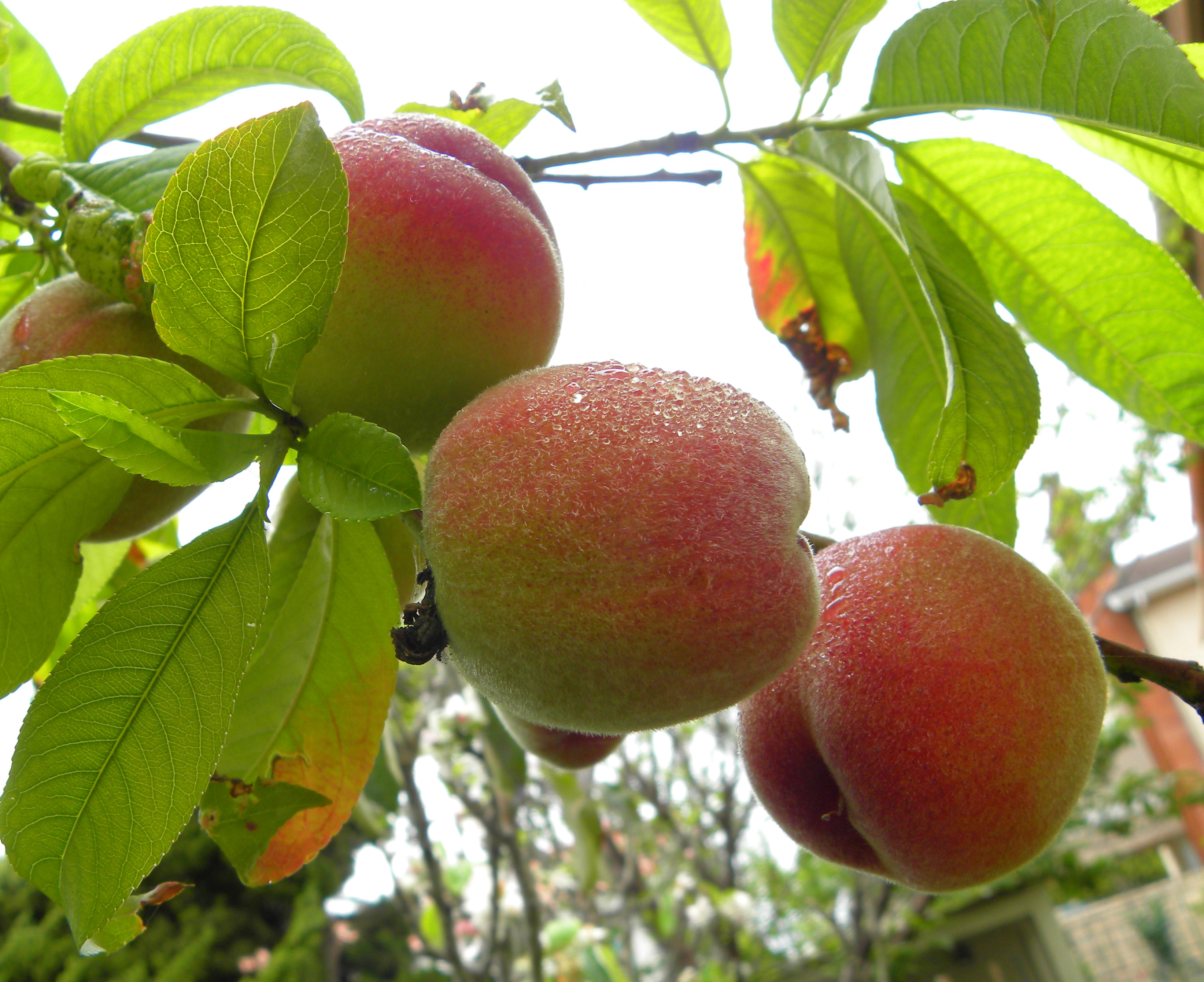 The Florida Prince peaches are nearing harvest. But I didn't thin them enough and the fruits are pathetically small again this year. This picture makes them look big, but they're not. I'm thinking that they're going to be mainly skin and seed. Time will tell. They should be ready to pick in another few weeks.