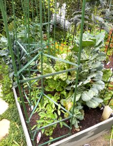 I didn’t photograph the rest of my harvest from last week, which was just two avocados. So I’m going to put in pics of the actual garden, which I prefer anyway. I like to see gardens growing. My harvests are generally so pathetically small, that I’d rather photograph the living plants anyway.