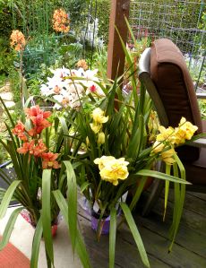 I bought some new orchids this year for the deck. Yep, they grow year-round outdoors in coastal southern California. I really like the three of them massed together.