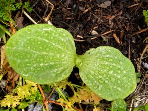 I didn't plant this. It sprouted from my homemade compost. I figure it's a pumpkin or winter squash of some kind. I know that I should weed it out, but I just can't. I figure if it came from my compost pile, it must be something that I grew. But I had some mini winter squash that were hybrids, so it could be anything. Hybrids don't breed true. I'm afraid that my curiosity about what it might grow into may overrule my better judgement (OK, THEM. There are 8 of them sprouted.) Time will tell. What do you say, weed it out or transplant it and see what it grows into?