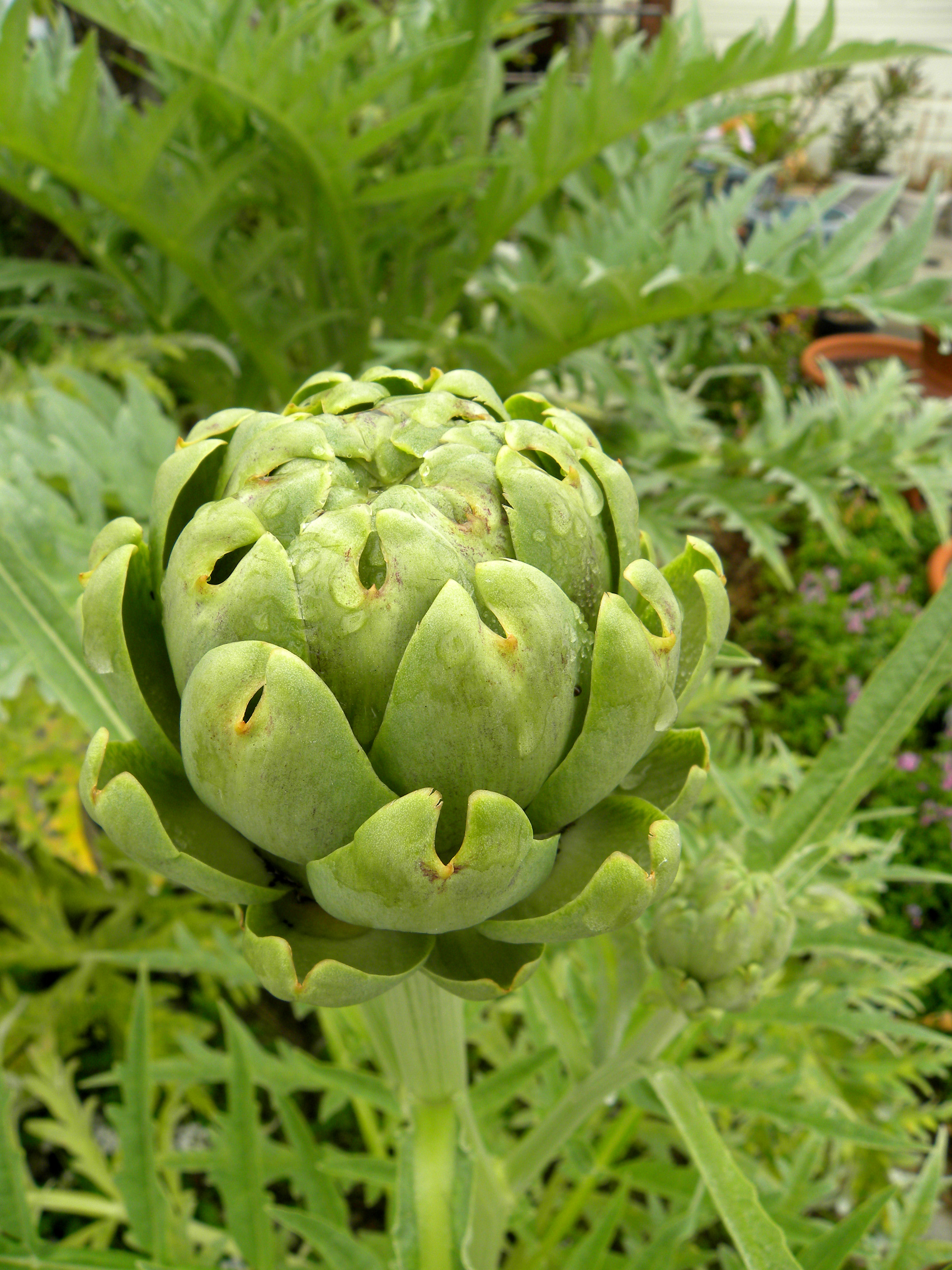 I see artichokes on the menu for dinner tonight. They were almost ready to harvest on Friday when we left for the weekend, but I didn't want them to just sit in the refrigerator. This one is a bit past prime. But it will go great with some chicken or steak cooked on the BBQ.