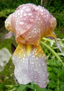 I got some free irises from someone a couple of years ago. They are supposed to be white with ruffled edges. This one is neither. But I like it anyway. This is the first year of bloom for it. The other irises from that source are still small and haven't bloomed yet. Maybe they're the white ruffled ones.