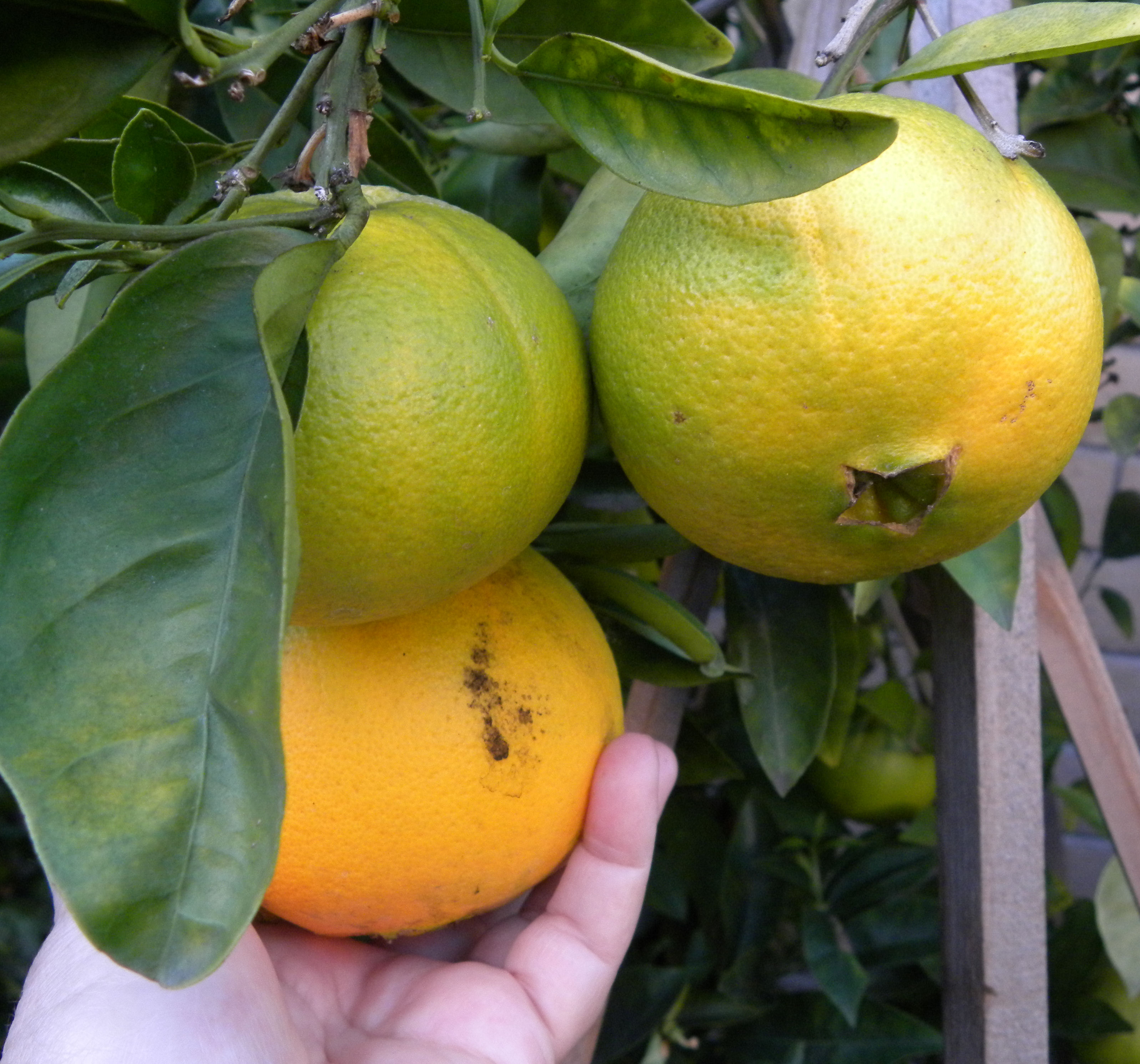 Both my dwarf navel orange and semi-dwarf avocado trees are producing bumper crops this year. But given the small size of the trees, 50 oranges and 20 avocados on each tree constitutes a bumper crop.