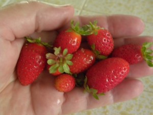 The strawberry harvest was pathetically small, not enough to make jam, just enough to put into a bowl of cereal.