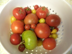 The tomato harvest is pretty much over. Production of tomatoes was low this summer, but I managed to get several quarts of spaghetti sauce frozen for winter.
