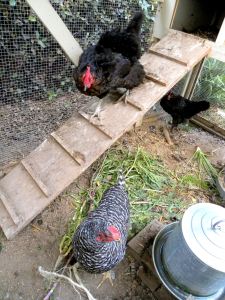 So am I rolling in eggs? Not at all. Henrietta, our Black Australorp, has been molting for a couple of months now and is not laying. Miss Hillary laid two eggs right after we got her and then stopped. She is now molting as well. The burden of egg production has fallen on the shoulders, er, wings, of Chicken Little. But she’s an older girl now, and winter is coming on, so we’re getting only about four eggs a week at present. Ah, the joys of chicken keeping.