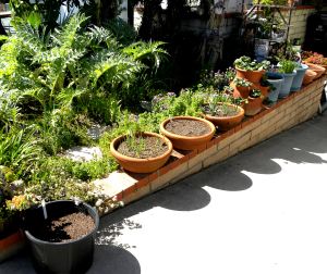 Growth on the horseradish in the center pot is rampant. Ginger in the pot on the left has just poked the first sprouts above ground. All three ginger roots have now sent up a plant shoot.