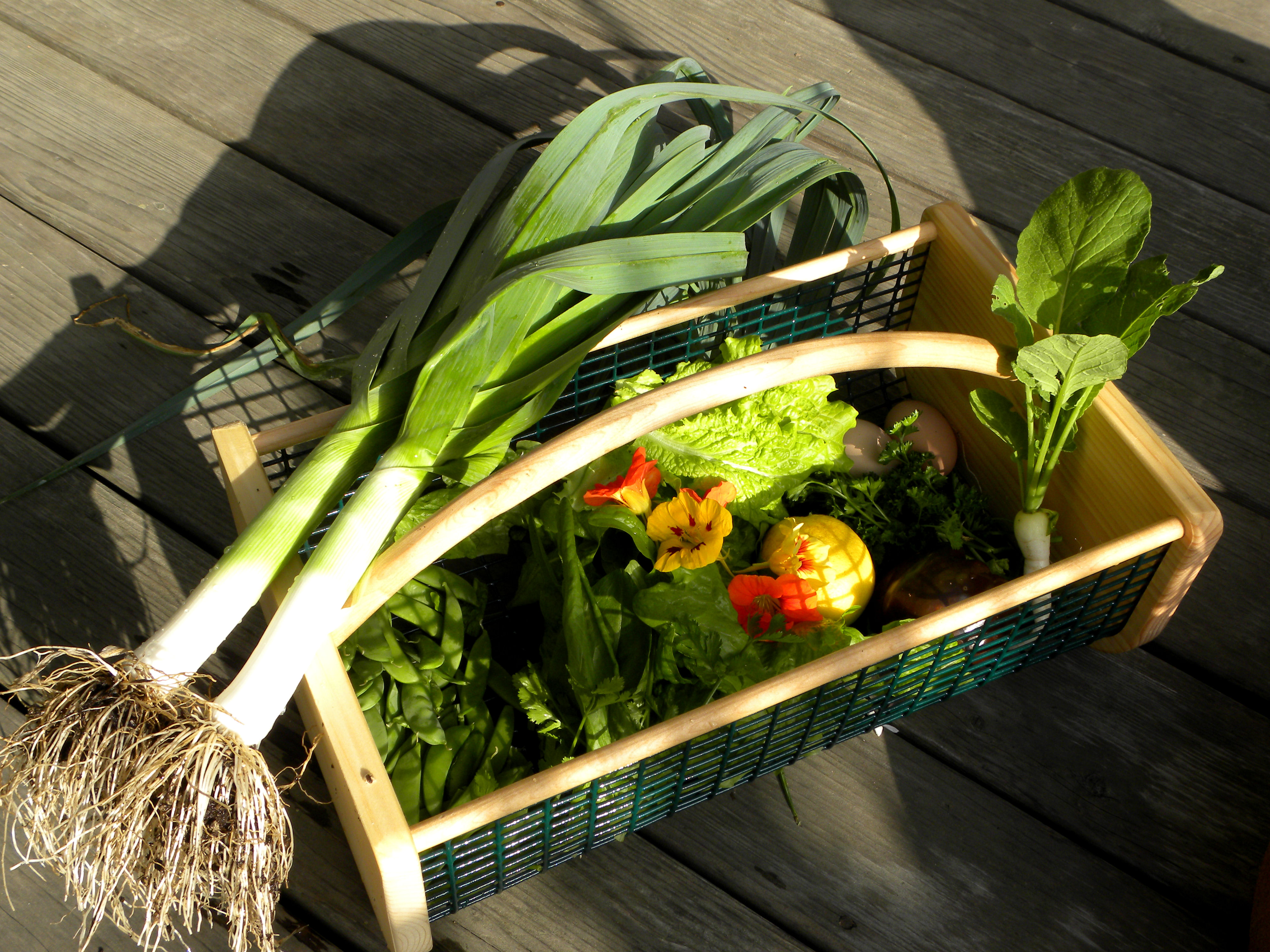 TOTAL HARVEST: 14 eggs plus 3 lbs, 5 oz. produce