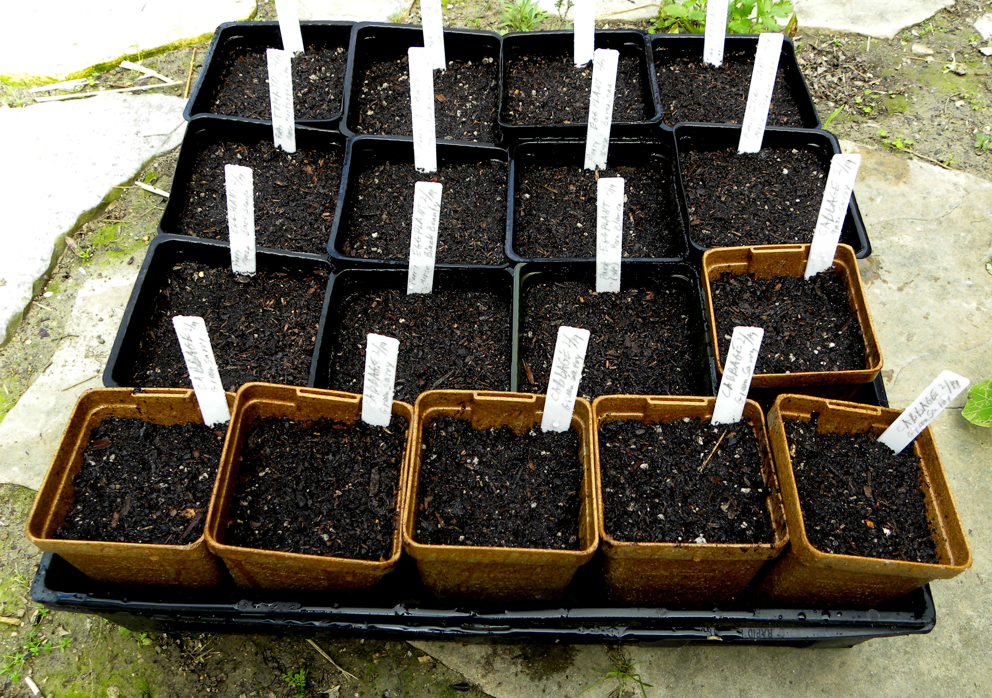 I have a couple of new rows of Golden Wax Beans that have their first true leaves, a patch of patty pan squash (3 heirloom varieties, Bennings Green Tint, Yellow, and White) that has yet to sprout, and a Millionaire eggplant left over from last year that is reblooming for the 2010 season.
