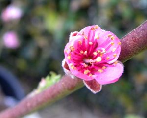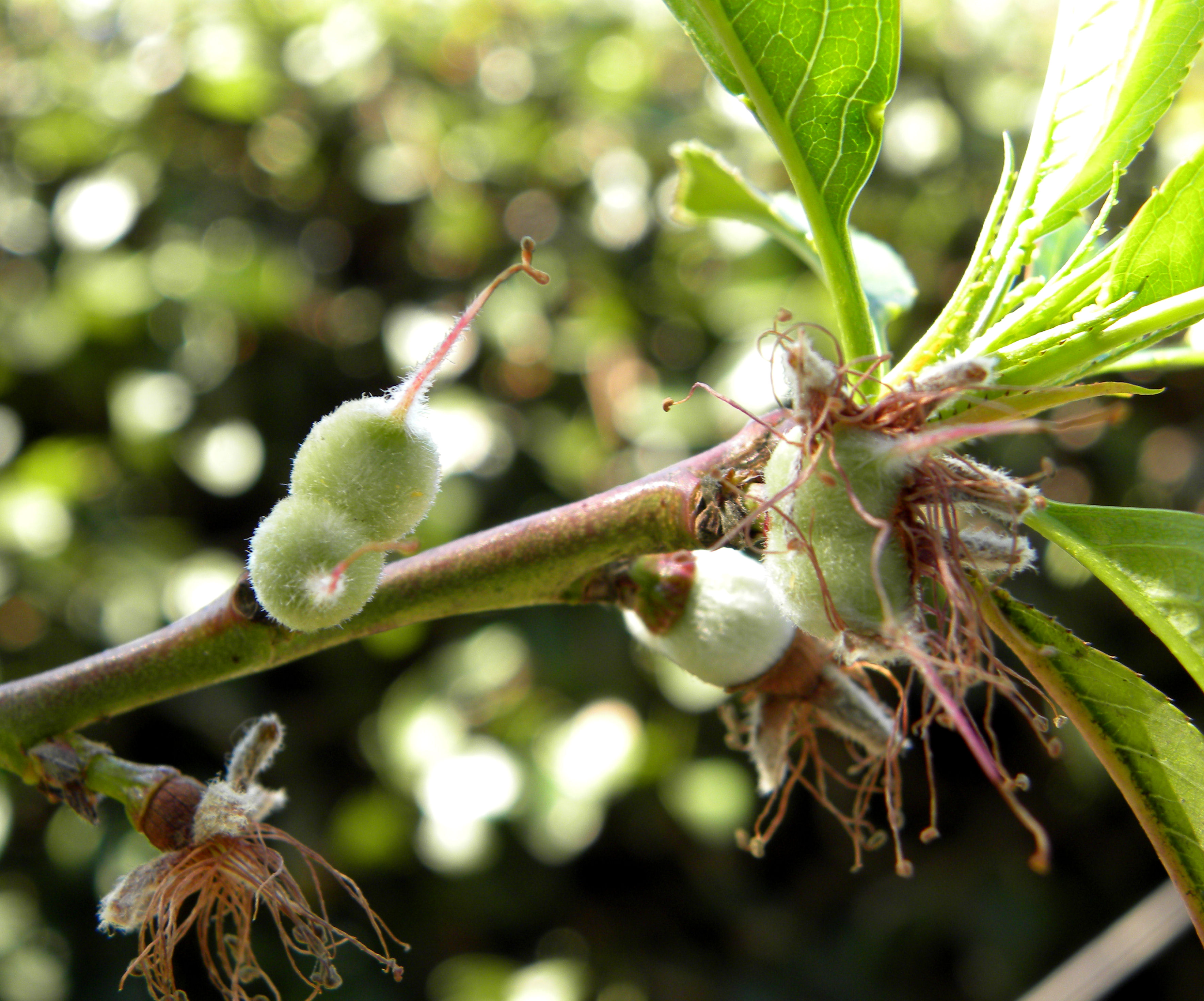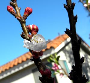 My Panamint Nectarine is in full bloom right now, but the Snow Queen Nectarine is still dormant, as is the Santa Rosa Plum, Katy Apricot, all three apple trees and the two Asian pear trees.