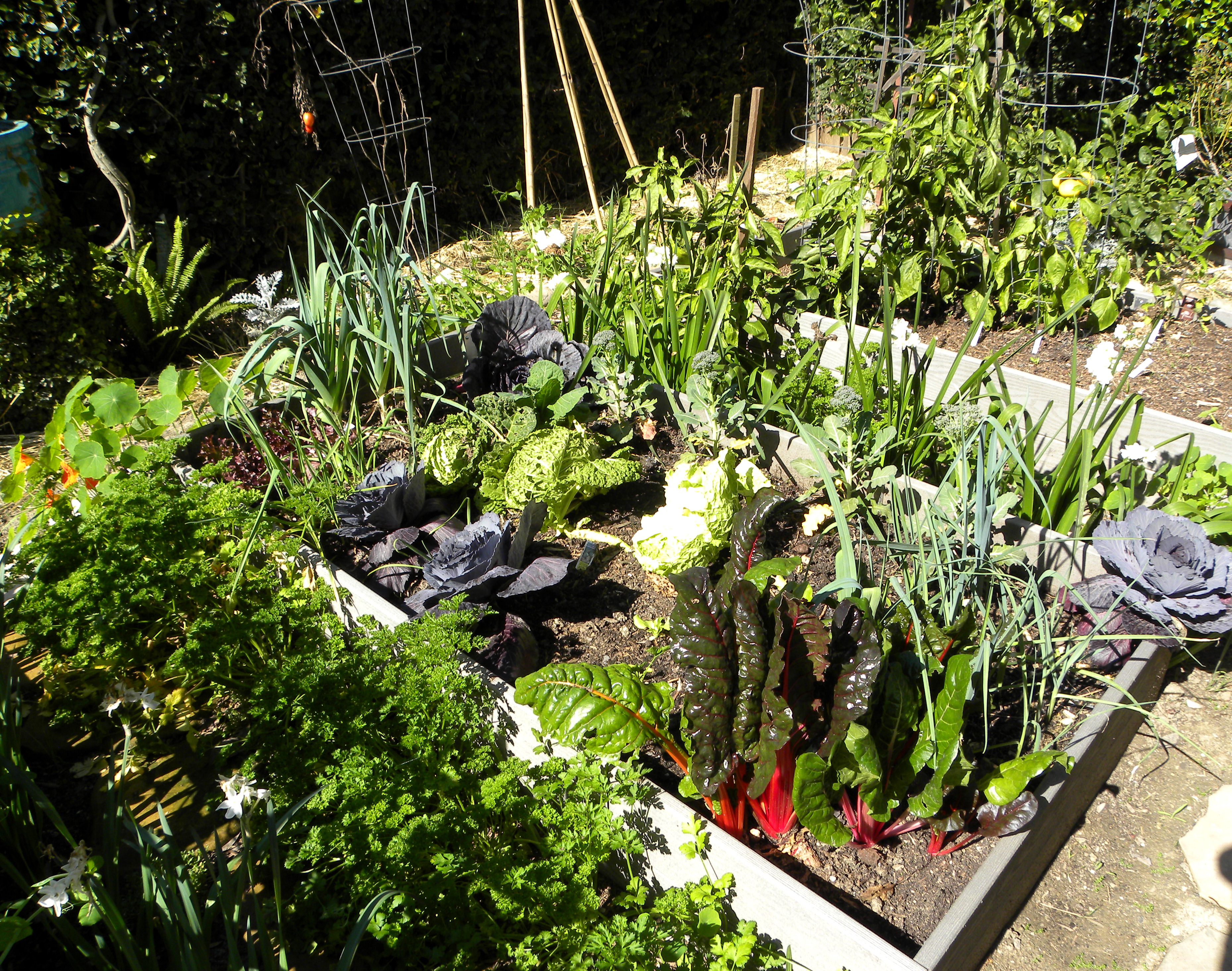 I promised myself that this would be my best organic garden ever, and so far that’s what it’s shaping up to be. I’ve been working on growing more fruits and vegetables in our yard for several years now, and this is the year that I expect to reap the reward for my past efforts at planting fruit trees, bushes and vines, other perennial flowers and vegetables, as well as building a chicken coop, resetting the pavers in back, and incorporating raised garden beds into our landscape.
