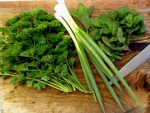 Somewhere under the kale, I have a couple of Green Bunching Onions that are going to seed. I save seed from heirloom vegetables, so I’ll just let them go to flower and set seed. When the flowers are dry, I’ll harvest them into a paper bag and shake out the black seeds. Elsewhere in the Garden of Infinite Neglect, I have a patch of yellow onions that are coming along nicely. Maybe I won’t neglect this dry, pathetic patch of dirt so much this summer.