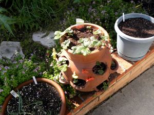 The horseradish is up and doing well. I won’t be able to harvest any roots until the plant goes dormant in the winter, so this is pretty much a 10-month committment. I planted ginger before the horseradish, but it hasn’t broken ground yet. I’m assuming that because ginger is a semi-tropical plant, it is waiting for warmer weather to sprout.