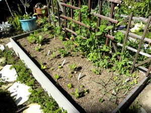The Garden of Infinite Neglect is looking less neglected with its refurbished flower border and new vegetable plantings.